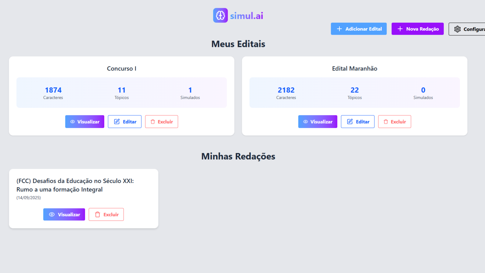 Plataforma SaaS que utiliza inteligência artificial para transformar editais em guias de resumos, simulados personalizados e correções de redações.