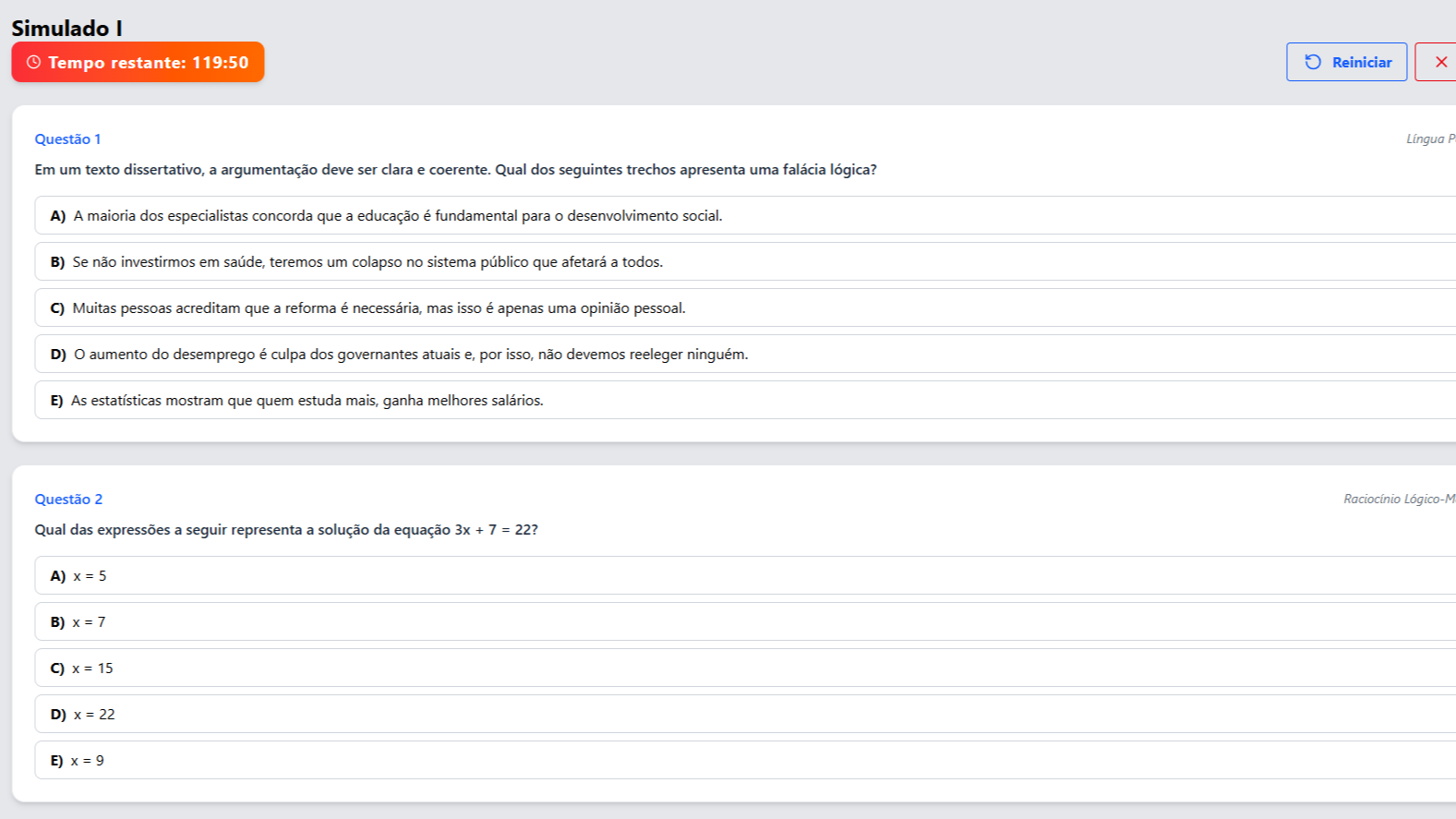 Por meio de análise inteligente, o sistema gera resumos organizados por disciplinas, cria simulados sob medida, corrige redações com feedback adaptado às bancas e acompanha o progresso do usuário.